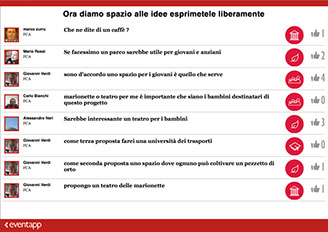 I partecipanti postano dei messaggi con i propri device e li condividono tramite il Textwall in proiezione comune.